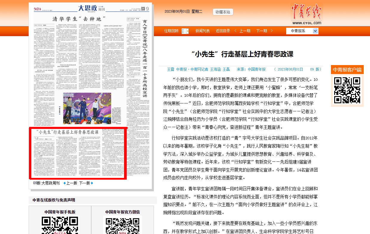 此次行知学堂是公司和首次联合桥头集镇中学开展行知学堂,小先生们与38名小学员在为期28天的实践活动中朝夕相处,共同收获了欢乐和成长,并赢得当地家长和学员们的一致好评,中国青年报对此进行了报道。(WilliamHill体育:周玉)