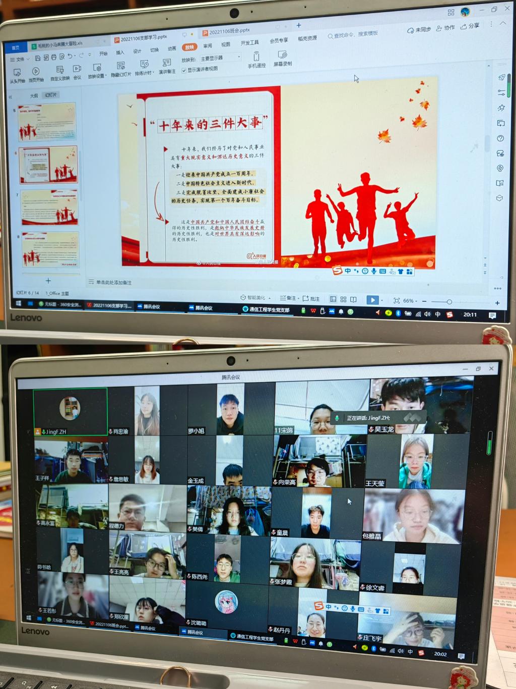 本网讯 为深入学习宣传贯彻党的二十大精神,深刻领悟党和国家事业发展大政方针和战略部署的历史逻辑、理论逻辑、实践逻辑,团结带领全体员工党员坚定理想信念跟党走,11月7日,根据疫情防控有关要求,电子信息与电气工程公司通信工程员工党支部组织全体党员进行线上集中学习,学习会由辅导员、党支部书记张静斐老师主持。