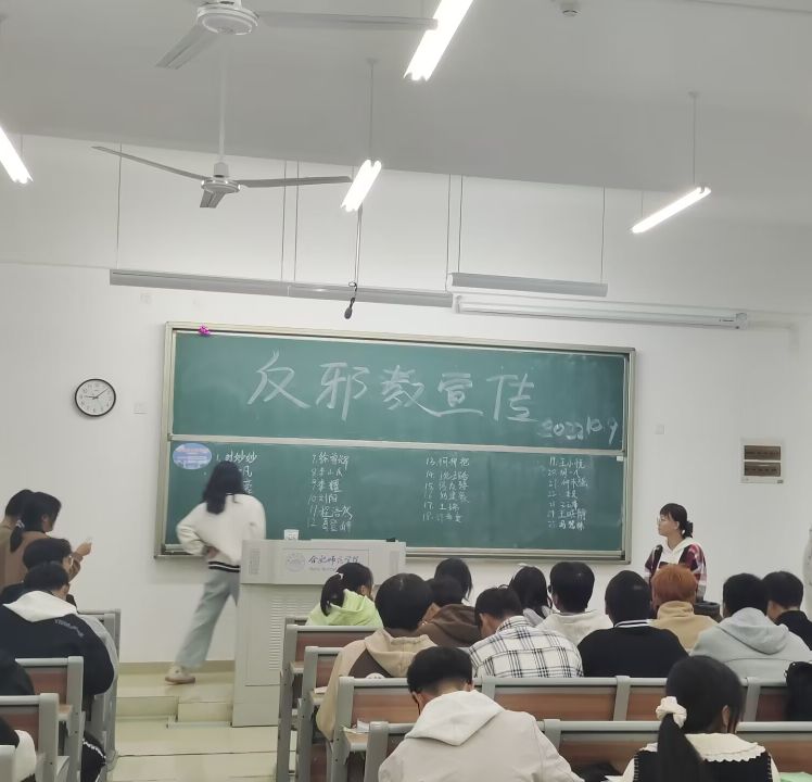 班会上,辅导员们从“什么是邪教”“哪些是邪教”“怎样认清邪教”以及“如何防范邪教”等方面,向同学们普及识别邪教相关知识与抵制邪教渗入的方法途径。并通过一个个鲜活的实际案例告诫同学们要学会运用科学知识和法律武器来武装自己,用实际行动反对邪教渗透。