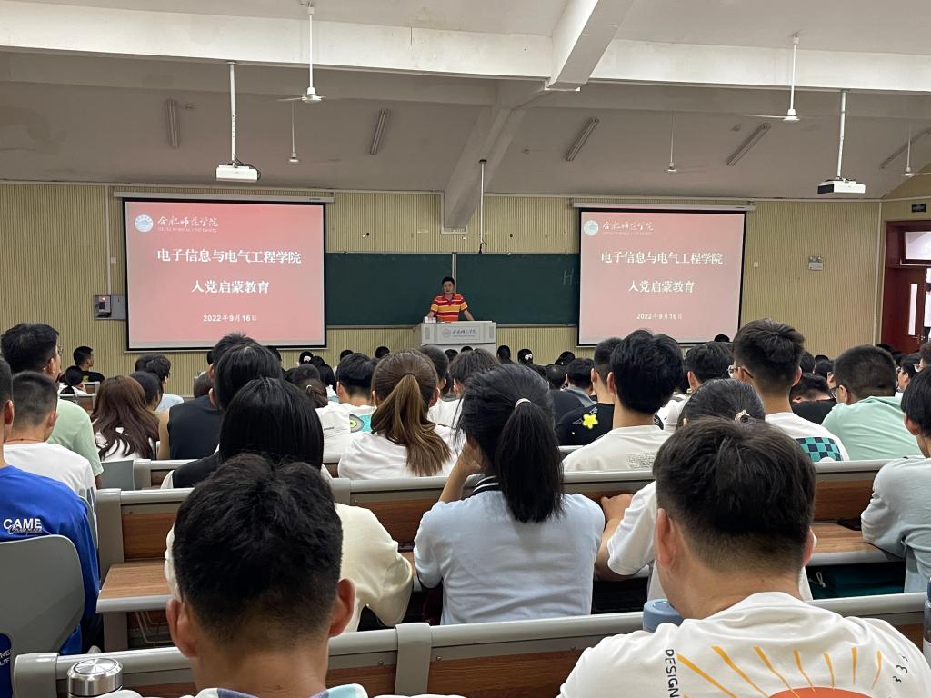 本网讯 为强化老员工理想信念教育,加强新生对党的认识,引导青年老员工积极向党组织靠拢,9月16日,电子信息与电气工程公司组织开展新生入党启蒙教育活动,课程由电子信息工程员工党支部书记郭棒主讲,全院378名新生聆听了课程。