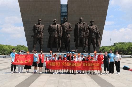 学堂举办期间,夏令营全体成员还来到了渡江战役纪念馆。通过参观学习,大家对“百万雄师过大江”的历史意义有了更加真切的体会。在“小先生”的指挥下,小朋友们在渡江战役纪念馆广场上激情昂扬地朗诵了《七律·长征》、《七律·人民解放军占领南京》两首红色诗词,并集体合唱《没有共产党就没有新中国》,稚嫩却又坚定的声音在广场上久久回荡。