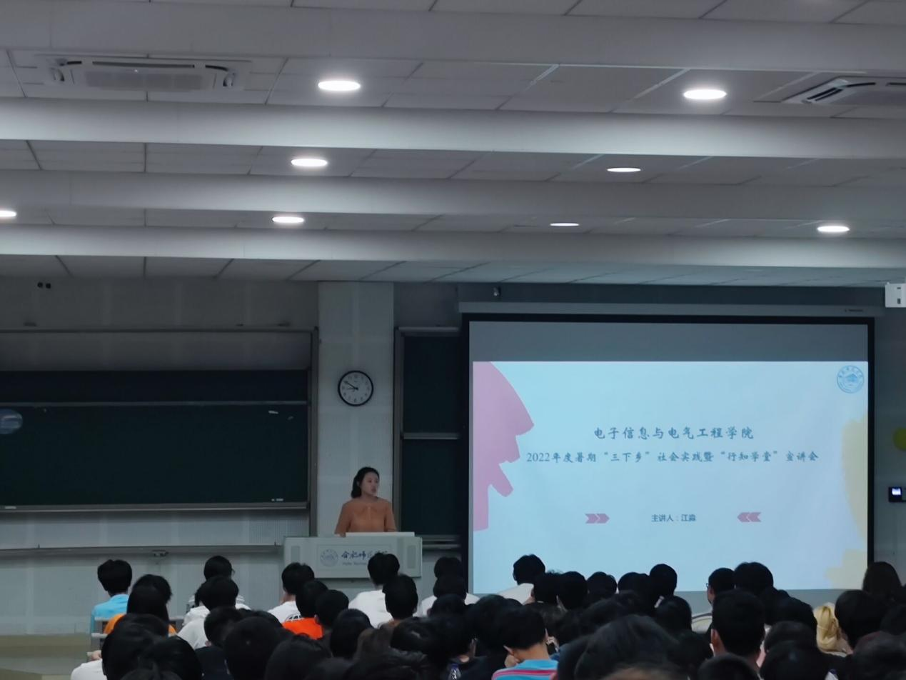 本网讯 为深入学习贯彻习近平新时代中国特色社会主义思想,落实立德树人根本任务,推进文化育人实践育人,强化老员工对社会实践活动的认识,推进2022年暑期社会实践活动顺利开展,5月30日,电子信息与电气工程公司团委在滨湖校区博学楼D101举行2022年度暑期“三下乡”社会实践暨“行知学堂”宣讲会,公司团委书记江淼老师、2021级全体员工近300人参会。