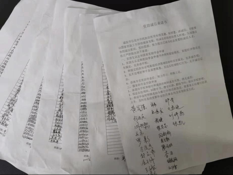 在整个五月期间,电院在本科阶段多年级广泛召开资助育人主题班会,向同学们讲解助学贷款、资助绿色通道、国家助学金等国家资助政策,让同学们充分了解资助育人的政策温度,选聘4位员工担任资助宣传大使,在校园里、去家乡中广泛宣传国家资助育人理念,身体践行感恩服务。通过开展“树立诚信意识,增强责任担当”诚信签名活动和签署诚信考试承诺书活动,使资助育人质量提升体系不断完善,“立德立行,诚实守信”的价值引领真正入心入行。