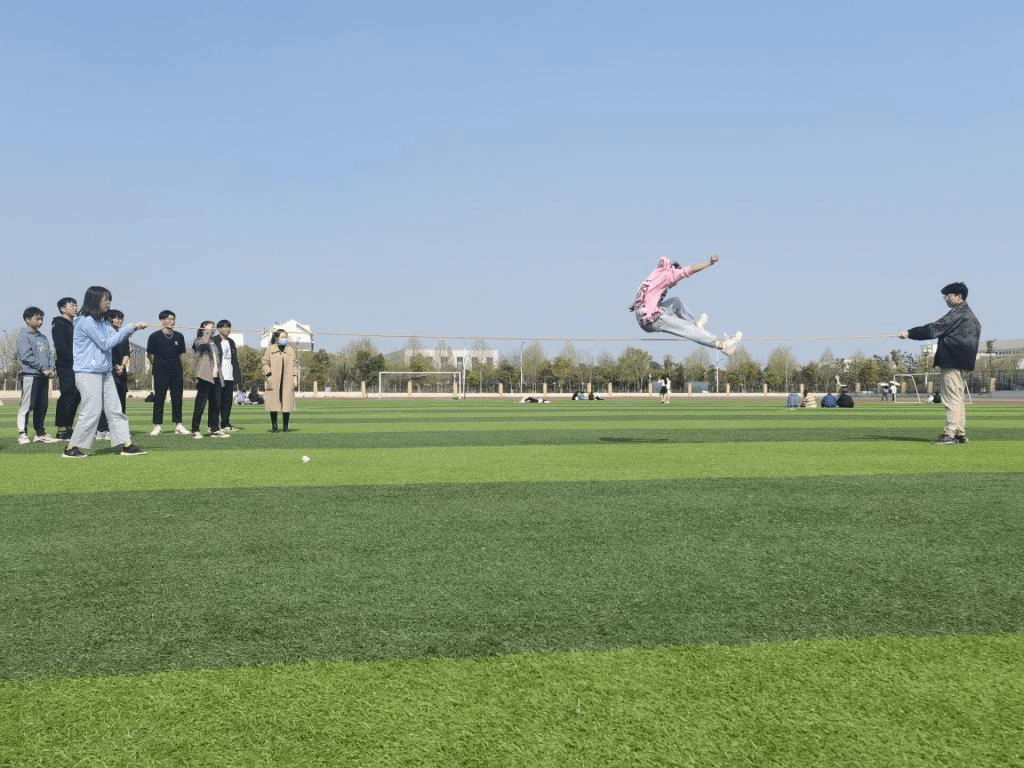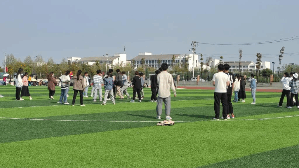 在公司操场上,同学们以班级或宿舍为单位,开展“蒙眼摸人”、“丢手绢”、“老鹰抓小鸡”、“ 1 2 3木头人”、“跳大绳”等室外趣味游戏,辅导员们也参与其中,欢笑声此起彼伏,师生们在形式多样的游戏中增进情谊,增强凝聚力,缓解了在疫情防控期间的工作、学习和生活压力。