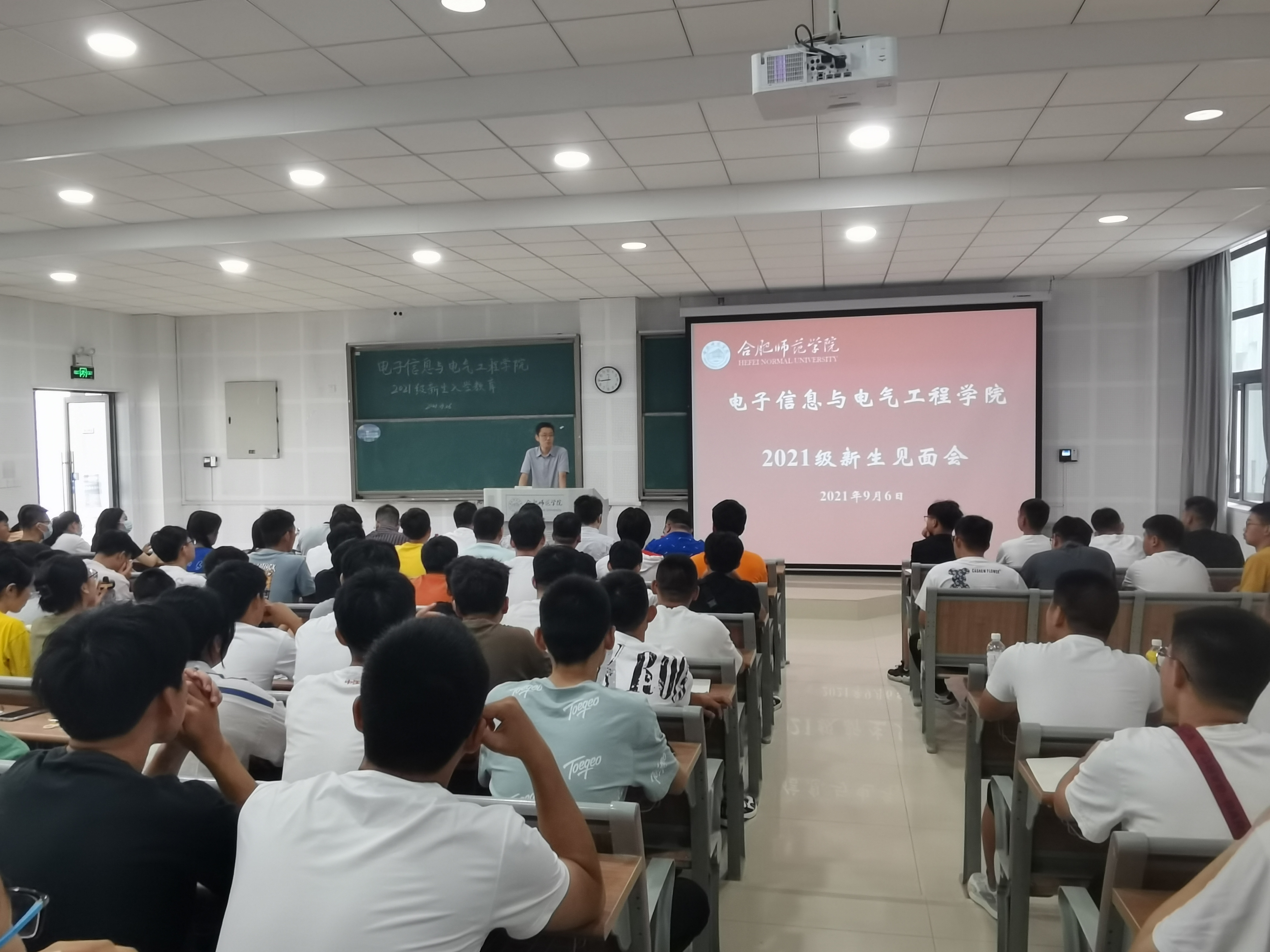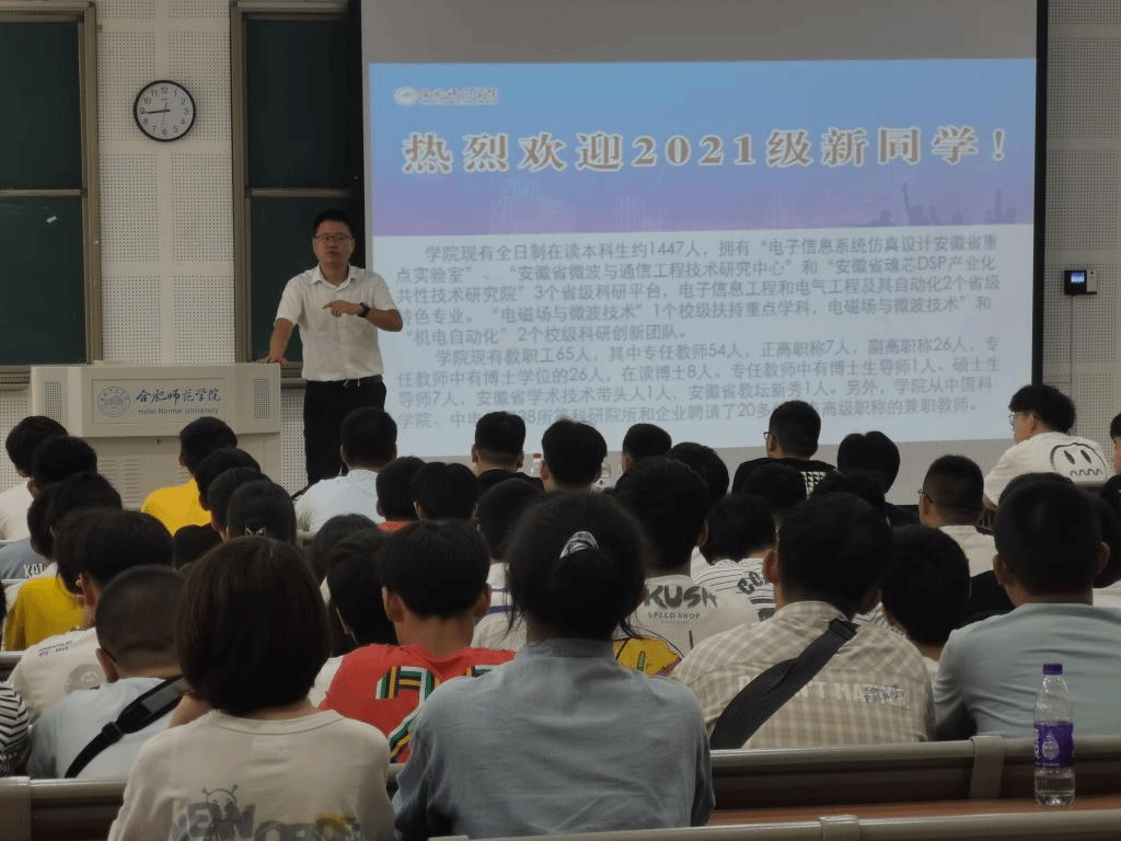 本网讯 为做好2021 级新生入学教育,引导新生尽快适应大学学习生活,促进优良校风、学风建设,电子信息与电气工程公司于9月6日、7日在滨湖校区博学楼D101开展了新生见面会暨新生入学教育。经理张忠祥、党委副书记胡石清、副经理范程华,各专业负责人、教学秘书、辅导员及2021级全体本科生共280余人参加。新生见面会由公司2012级新生辅导员江淼老师主持。