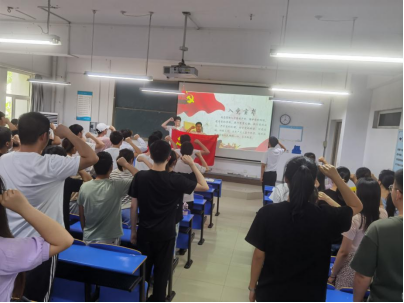 宣誓仪式开始,员工党支部书记张静斐老师宣读关于批准接收预备党员的决定。伴着庄严的《国际歌》,入党宣誓仪式正式开始。员工党支部周司文老师带领预备党员宣誓,预备党员们面向鲜艳的党旗,握紧右拳,郑重宣读入党誓词,以饱满的热情和昂扬的姿态表达为党的事业奋斗终身的决心和坚定的信念。