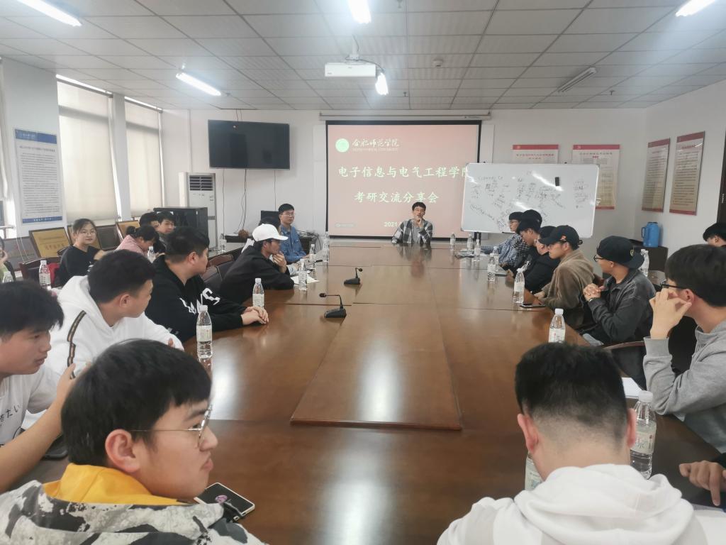 本网讯 为扎实推进党史学习教育,积极开展“我为师生办实事”系列活动,本着为同学们服务解难题的宗旨,帮助同学们明确学习方向及目标,激发同学们考研热情,电子信息与电气工程公司分别于4月4日、28日分别举办了线上和线下两场“考研经验交流会”。毕业班辅导员周玉、郭棒以及电院15级—19级员工代表参加了分享会。会议由分团委负责老师周玉主持。