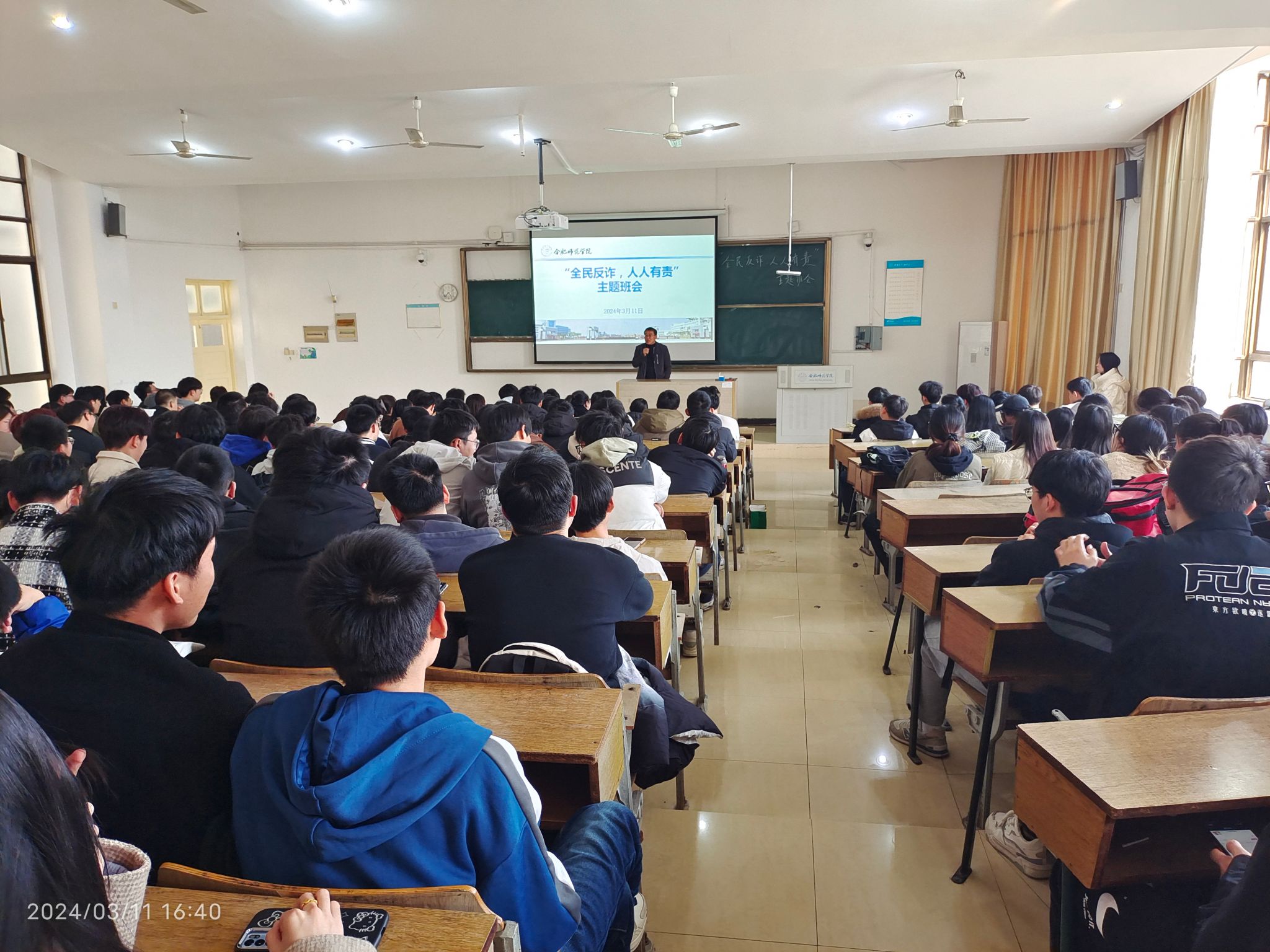 最后,束道锋介绍了公司去年涉电信诈骗相关数据,结合近期公司发生的电信诈骗案例,呼吁同学们遵纪守法,不可有“天上掉馅饼”的心理,提高自身安全防范意识,做好自己“钱袋子”的守护人,展现良好的合师学子精神风貌。