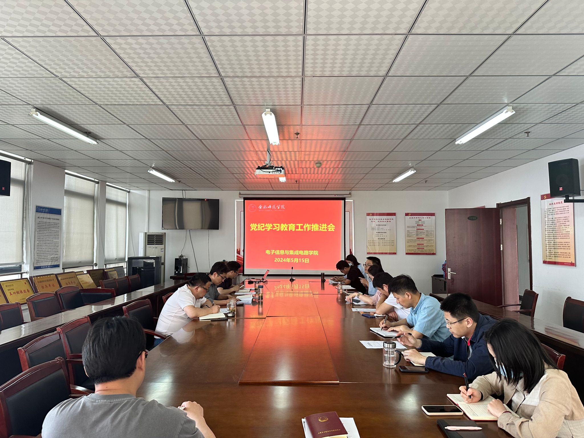 本网讯 5月15日下午,公司党委在行知楼1210会议室召开党纪学习教育工作推进会,公司党政班子、党委委员、纪委委员、各系部主任、各党支部书记,公司秘书和全体辅导员参加会议,会议由党委副书记、经理张忠祥主持。