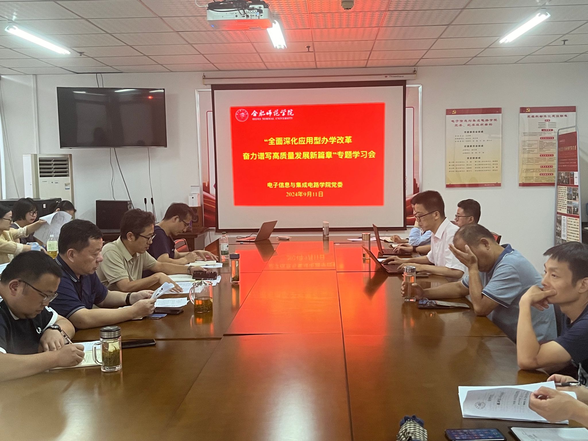 本网讯 为深入学习贯彻习近平总书记关于教育的重要论述,引导广大教师弘扬践行教育家精神,为校院高质量发展贡献力量。9月11日下午,公司党委在知行楼1210会议室召开“全面深化应用型办学改革 奋力谱写高质量发展新篇章”专题学习会议,公司党委书记王东明,党委副书记、经理张忠祥,党委副书记、纪委书记胡石清,党委委员、副经理范程华及全体教职工参会,会议由张忠祥主持。