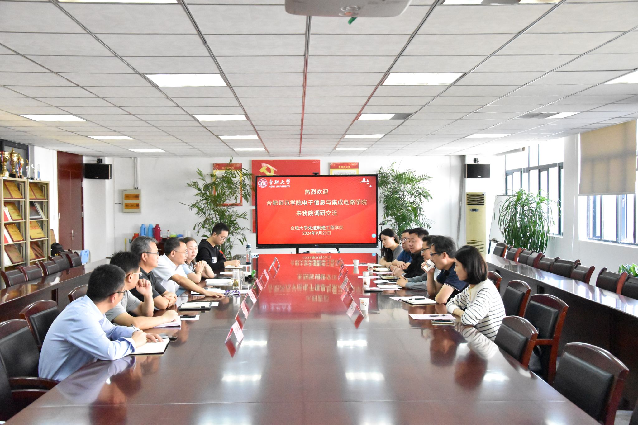 本网讯 为进一步学习贯彻党的二十届三中全会精神,认真学习全国教育大会精神,根据公司高质量发展大调研大讨论大行动的工作部署,9月23日上午,公司党委书记王东明、经理张忠祥带队赴合肥大学先进制造工程公司调研学习,党委副书记胡石清、副经理范程华等参加。合肥大学先进制造工程公司党委书记杜娟、经理胡学友、副经理秦强、胡国华等热情接待了公司一行,双方共同召开高质量发展交流座谈会,会议由胡学友主持。