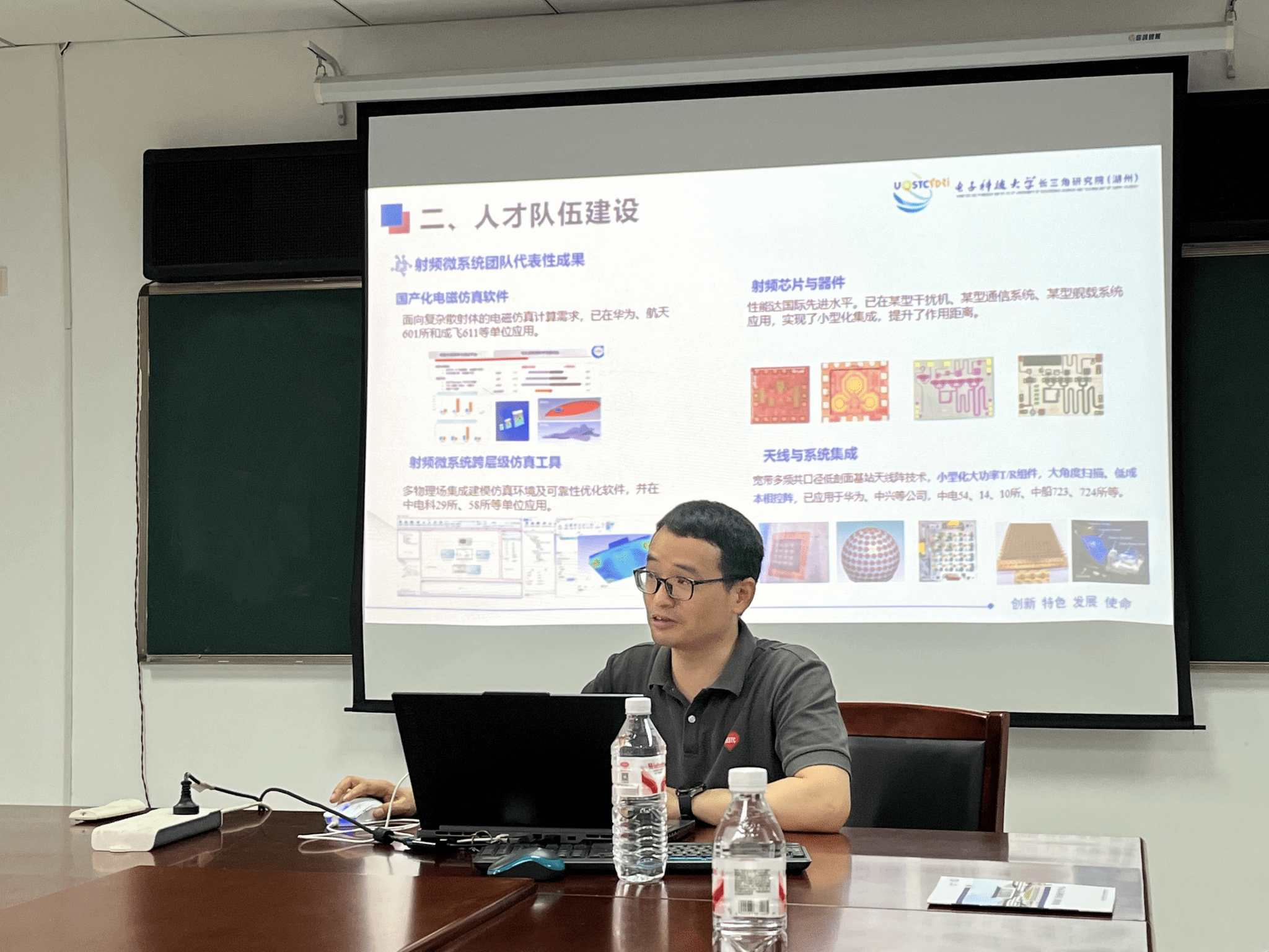 徐跃杭教授首先介绍了电子科技大学长三角研究院(湖州)集成电路与系统研究中心建设情况,介绍了根据实际需求进行功能集成,交叉复用,推动核心技术攻关和源头创新。平台对外开放共享,重点服务成长型科技企业,助推湖州市以及长三角地区科技创新与产业发展。然后,徐跃杭教授作“射频集成电路工艺-设计协同优化(DTCO)”主题学术报告,介绍了随着晶体管特征尺寸逐渐逼近摩尔定律极限,单纯通过尺寸缩小来提升器件及电路的性能将带来巨大的研发成本以及良率下降等问题。对此,国际上相继涌现出异质/异构芯片集成、Chiplet以及工艺-设计协同优化(DTCO)等解决方案。其中,DTCO方法能够将原本较为独立的材料和工艺研发制造和芯片设计两个环节有机结合,进一步挖掘工艺的设计余量同时实现工艺制造的定向优化,是国内外集成电路设计方法学的研究热点。随后,引出DTCO设计关键技术——半导体器件物理基建模,通过ANN+物理的方法搭建了跨层级多工艺非线性模型,并在电路优化设计中进行了验证。
