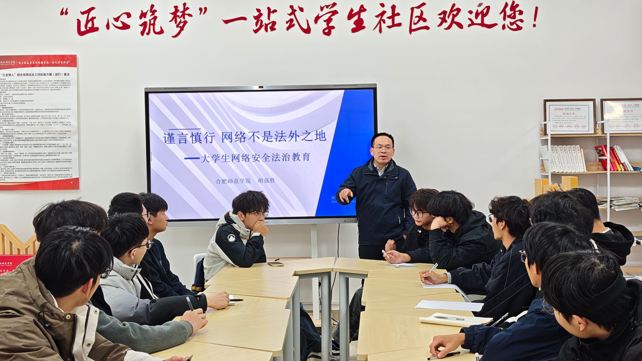 现场氛围浓厚,各班代表认真聆听、积极互动。在交流环节中,同学们围绕 “隐私保护权益”“实习协议签订”等具体问题踊跃提问,胡老师逐一作出专业解答,进一步深化了员工对法律知识的理解与应用能力。参会班委纷纷表示,将把学习内容整理成班会材料,通过主题班会、案例分享、法律顾问咨询等形式,将法治意识传递至每一位同学。