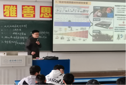 孙伟老师首先介绍了电子器件环境中电磁污染引起的危害,简述了吸波屏蔽机理,传统吸波材料类型以及其在吸波屏蔽领域中的应用情况;其次从结构特点、制备策略及吸波屏蔽性能等三方面详细介绍了MXenes基二维复合材料在吸波电磁屏蔽领域工作中的研究进展,并展望了MXenes基二维复合材料在智能型吸波电磁屏蔽材料领域中的应用前景。最后,对本专业员工的个人学业规划以及如何培养科研素养给出了一些针对性建议。