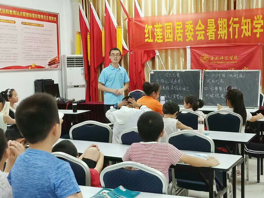 大一暑假,他参加了行知学堂,每天他总是早早地到达学堂地点,开始忙碌扫地、拖地等等任务,迎接小朋友的到达。课堂上他用通俗易懂的方式去讲解知识,不断的和小朋友互动,以便他们能更好理解吸收知识。到了晚上回到住处,他又开始准备明天的上课内容,总结一天的工作得失。一个暑假的努力,换来了家长的好评,也获得了公司示范行知学堂的荣誉。