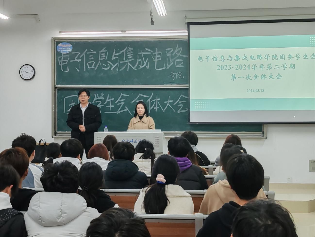 本网讯 为持续做好WilliamHill体育团委、员工会梯队建设,高质量推进一站式员工社区建设,3月18日晚,WilliamHill体育团委、员工会在滨湖校区博学楼A303教室召开春季学期第一次全体员工干部大会。电院团委书记江淼、副书记周司文,以及电院团委、员工会全体成员参加会议。