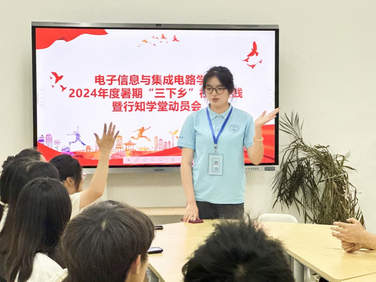 江淼老师在会上阐述了开展暑期社会实践活动的意义,重点介绍了“行知学堂”是什么、“行知学堂”背景以及“行知学堂”品牌力和社会影响等。她围绕活动时间、参与对象、参与形式和主要内容等多个方面,详细讲解了2024年暑期“三下乡”社会实践暨“行知学堂”开展要求和有关事宜。她号召广大同学按照就近就便的要求,结合自身实际和专业特点,创造性开展各类社会实践活动,在社会实践中了解国情社情民情,感受祖国发展变化,让青春在实践中绽放绚丽之花。同时,她强调,各实践团队和个人要做好自然灾害和突发事件应对预案,确保活动安全平稳、有力有序。